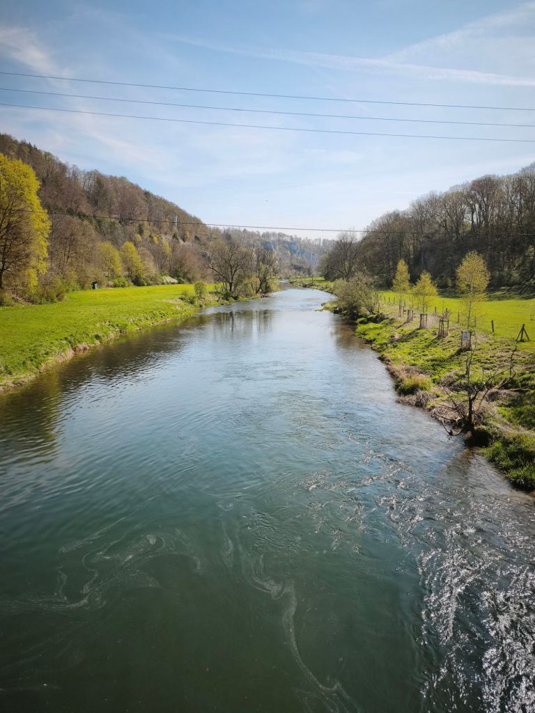 Zum Glück habe ich meine Motorradhandschuhe eingepackt. Der Weg führt durch Wälder, über unzählige Brücken, vorbei an Äckern und Auen, meist direkt entlang der noch jungen Donau. Ich passiere eine Eselsfarm, ein Rehgehege und einige Mühlen. In einer davon kehre ich ein und nehme, was es um diese Uhrzeit schon oder noch gibt: ein belegtes Brot. Dazu kommen zwei Äpfel vom Markt in Sigmaringen mit seiner imposanten Hohenzollern-Schlossanlage – vorerst meine Ration für den Tag.