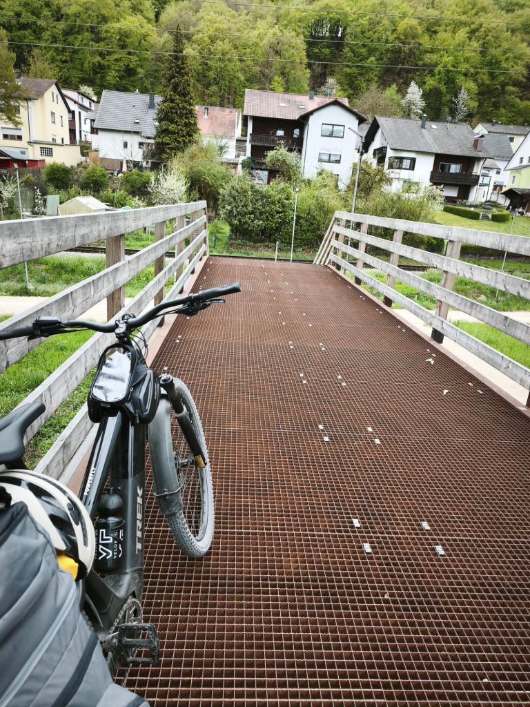Bei diesem Treppenübergang habe ich nicht mehr daran gedacht, dass es einen Knopf gibt, mit dem man das Velo stromunterstützend schieben kann.