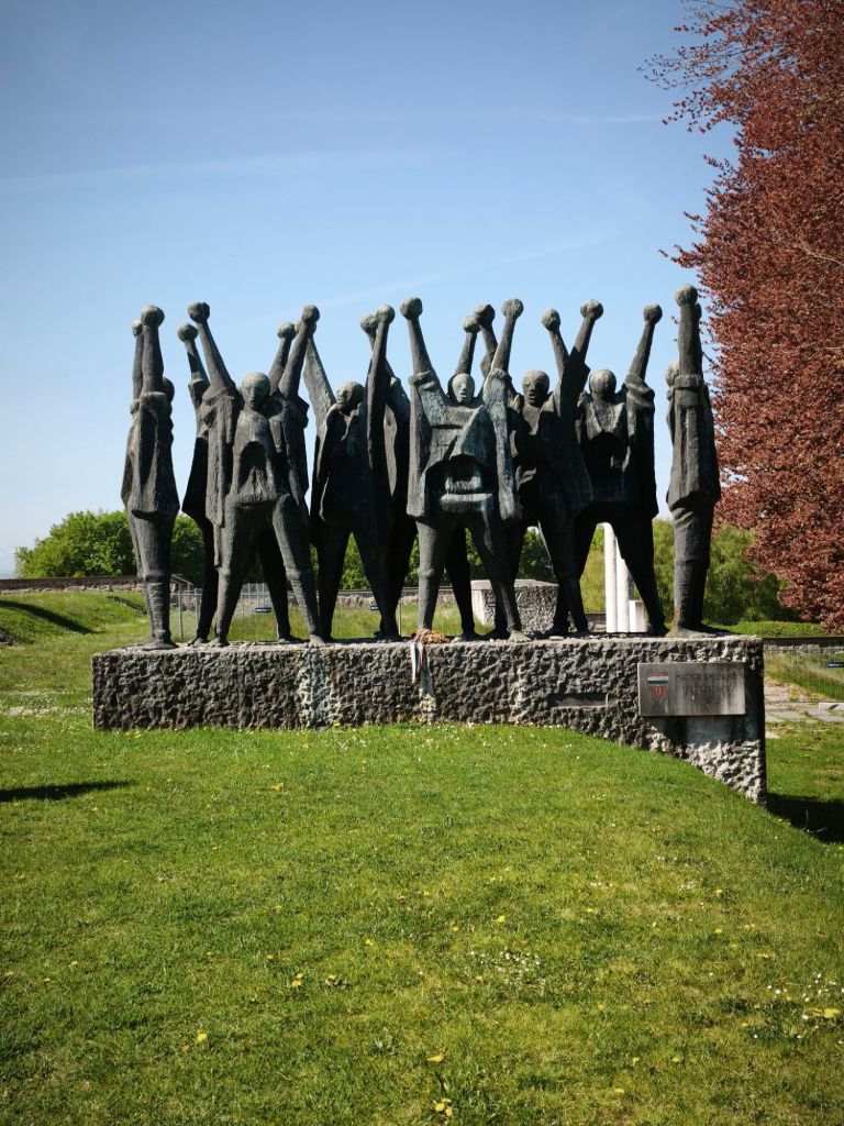Diverse Staaten und Ethnien (Roma, Sinti) haben vor dem Einganstor ihre eigene Gedenkskulptur. Hier ist das der Polen.