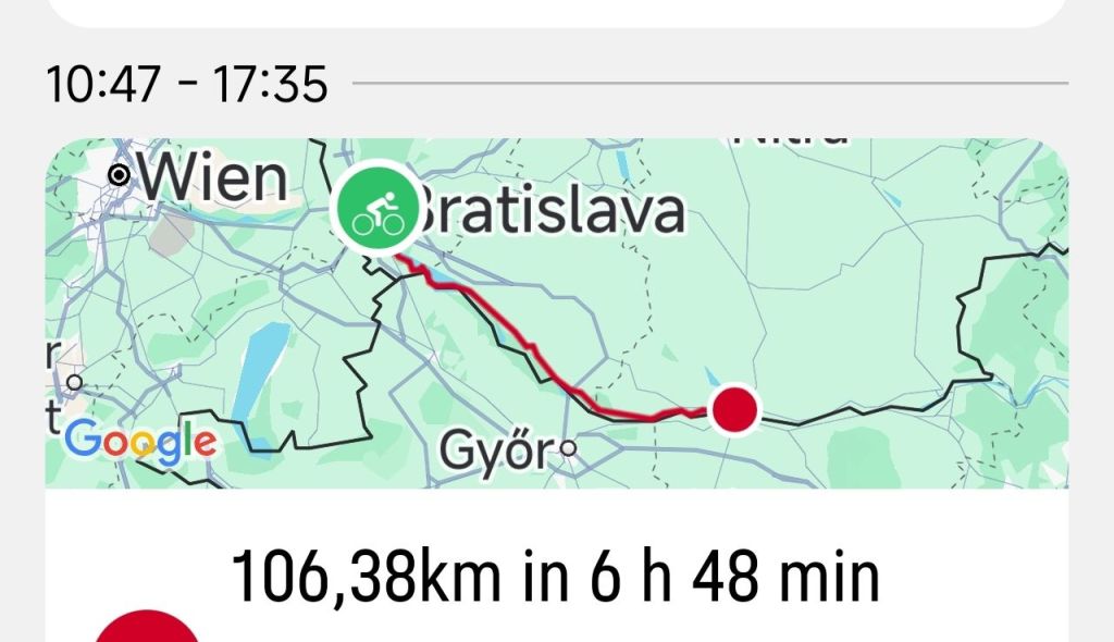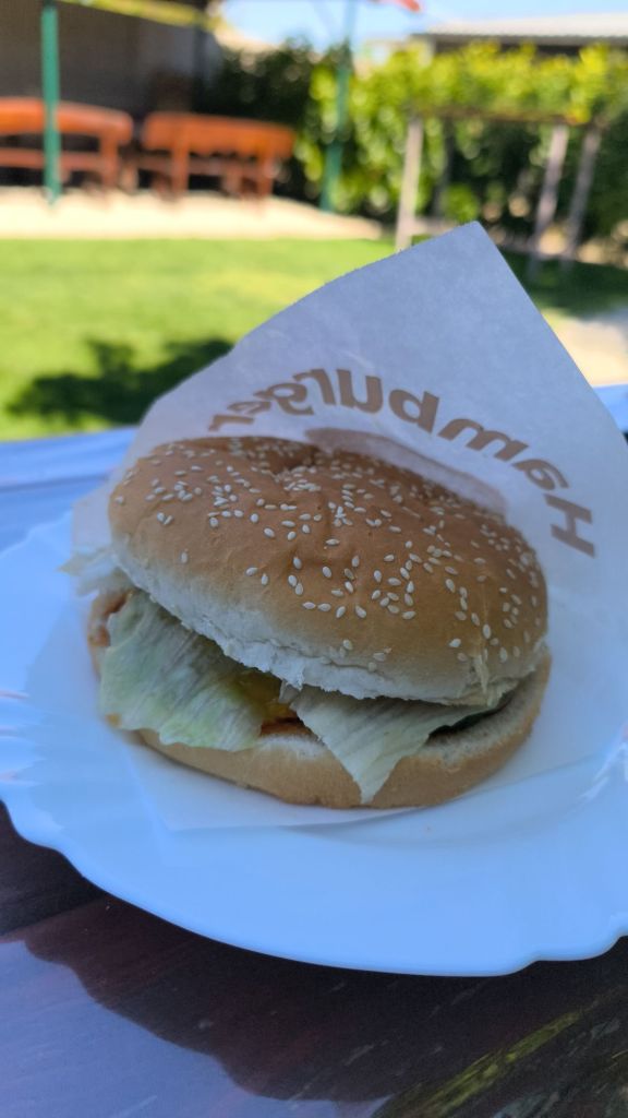 Nach fünf Stunden Fahrt erreiche ich diese sehr einladende Gaststätte. Die Wirtin spricht nur Slowakisch, versteht aber „Hamburger“. Den Preis für vier Getränke und einen Hamburger zeigt sie mir auf dem Taschenrechner: 12,25 Euro. Ich bin ihr einziger Gast.